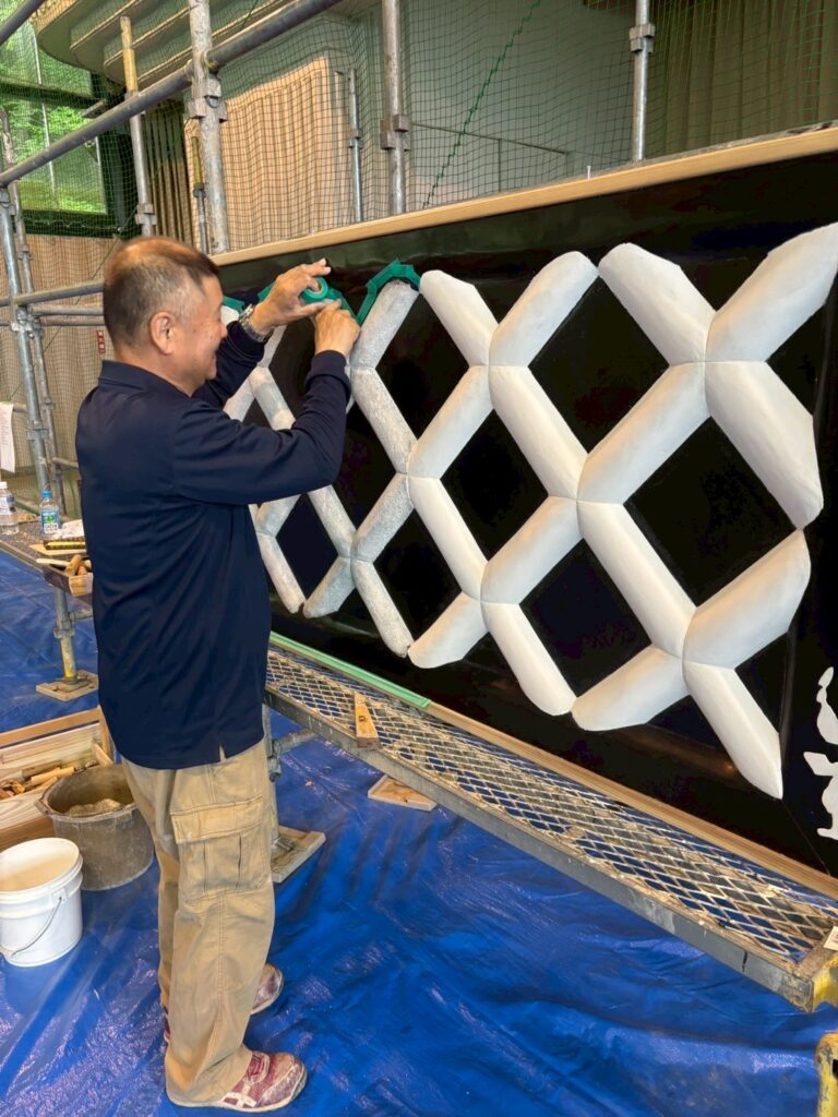 立体的な漆喰の造形美を創り出す熟練の技が披露され、現代では目にする機会が貴重となった伝統技法の極意を、参加者たちは熱心に記録していました。