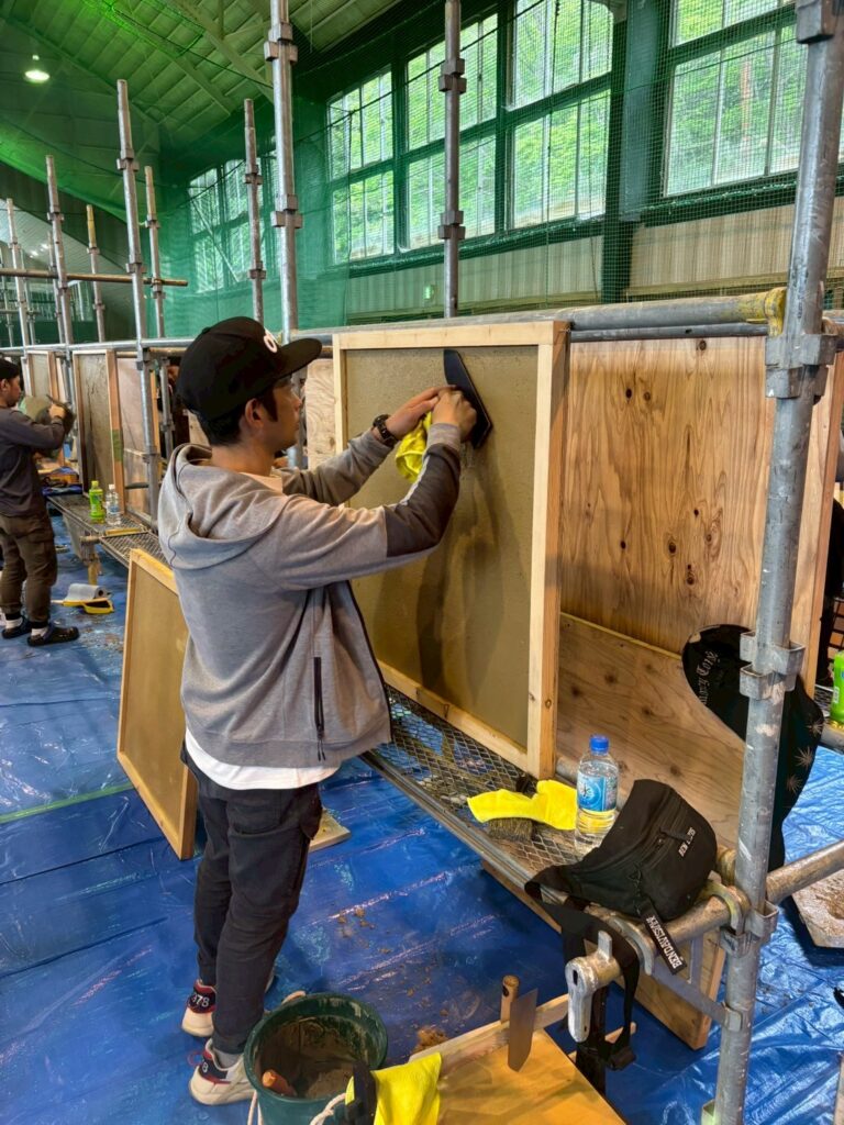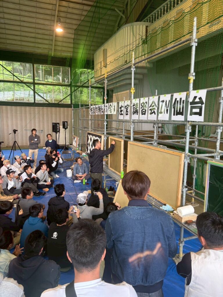 2025年5月24日(土)・25日(日)の2日間、宮城県仙台市の「秋保森林スポーツ公園体育館」にて左官講習会を開催いたしました。新緑の美しい季節、全国から多くの志を共にする仲間が集結しました。